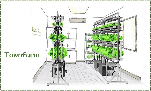 リビングファームの昨年開発した流水型の野菜テラスFL−1で本格的な野菜(リーフレタスなど)が量産できます。