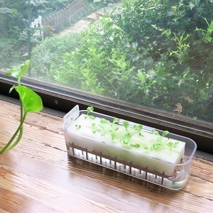 苗作りに準備するものは: リビングファーム苗作り3点セットと水菜の種子です